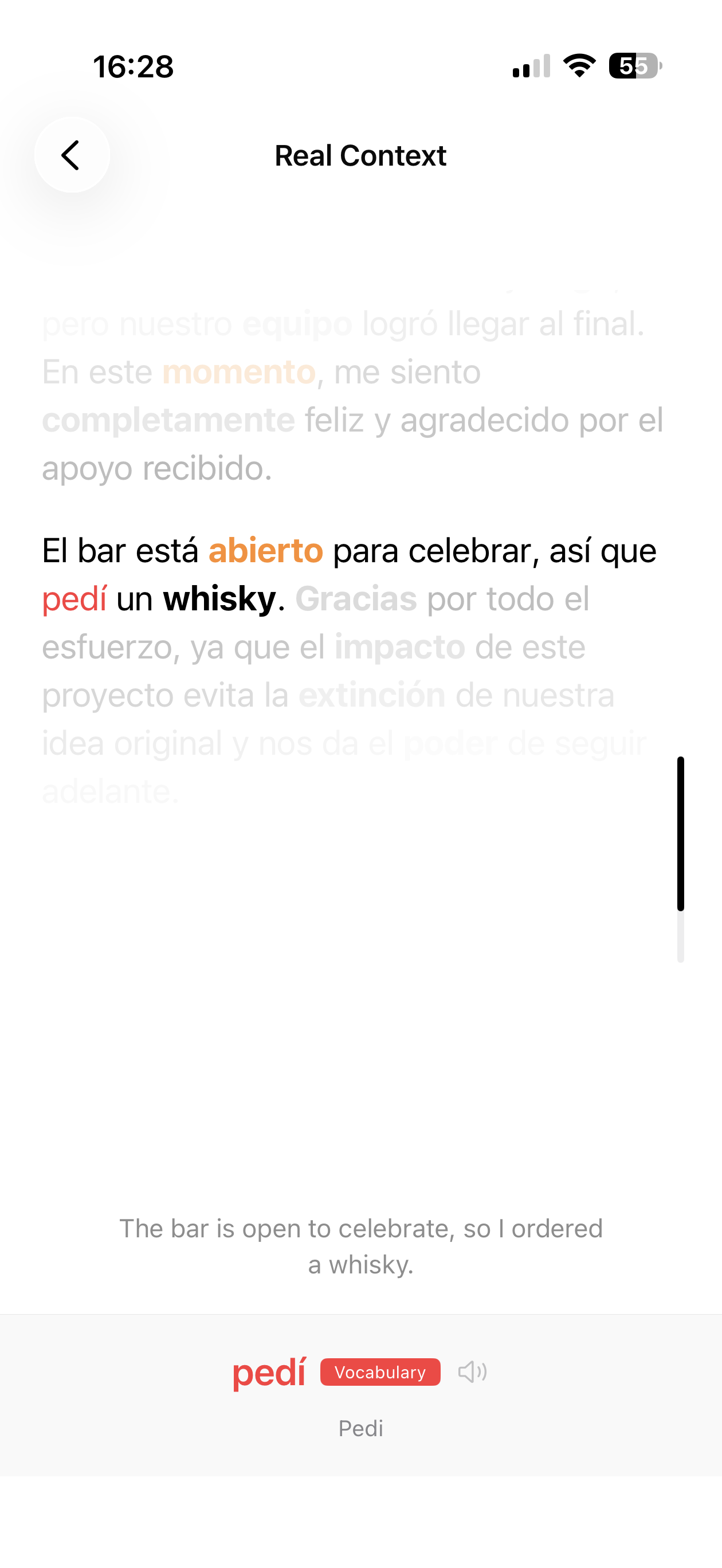 After each session, your words are woven into a coherent article so you see them in real-world context, not isolation. This approach reinforces vocabulary through narrative comprehension, helping you understand how words naturally connect and flow together in authentic writing.
